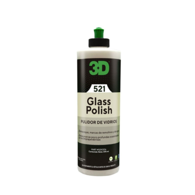 3D Glass Polish es un pulidor exclusivo para vidrios a base de óxido de cerio. Este producto fue diseñado para eliminar remolinos, rayones, marcas de limpia parabrisas; así también como manchas de agua de las superficies de vidrio.