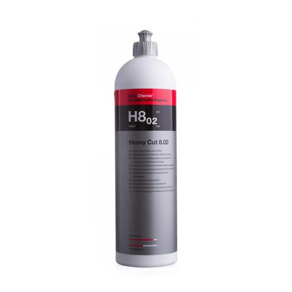 Koch Chemie H8 (Heavy Cut 8.02) es un pulimento abrasivo de alto poder de corte, desarrollado para la corrección de pinturas con defectos severos. Elimina rayas profundas, marcas de lijado desde grano 1500, oxidación intensa y niebla de pintura de forma rápida y efectiva.